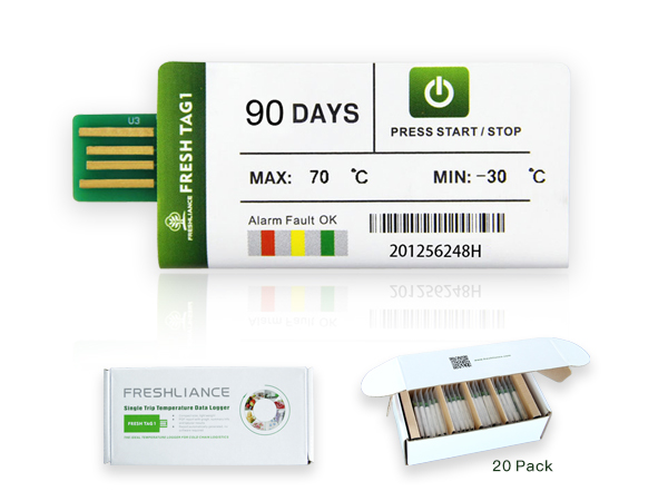 L'enregistreur de données de température USB Fresh Tag 1 est le choix idéal pour surveiller et enregistrer les changements de température des marchandises sensibles pendant le transport. Il est peu coûteux, facile à utiliser et prend peu de place. La fonction intégrée de génération de fichiers PDF peut générer des rapports de données au format PDF non modifiable en connectant l'enregistreur à un PC via l'interface USB2.0.